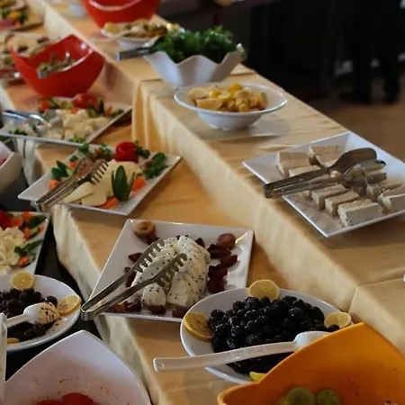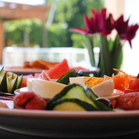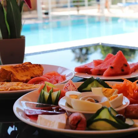 Ein einfaches Frühstück kann im Restaurant eingenommen werden. Es gibt zudem eine Poolbar mit Karaoke und einem TV. Türkische Küche wird im Restaurant Star Restaurant serviert, das rund 5 Gehminuten von hier entfernt liegt.